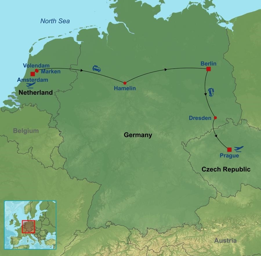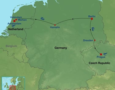 🗺️ Itinerário – Amsterdã, Berlim e Praga