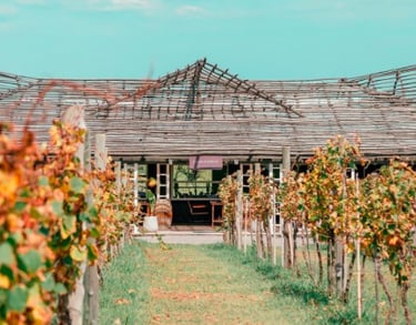 A chegada à vinícola acontece por um caminho florestal encantador, que conduz até o coração da Bodega Gamboa.