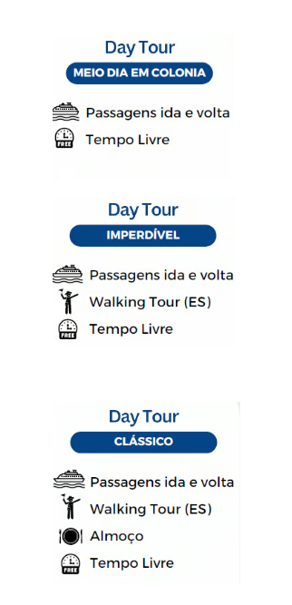 *Os Day Tours a Colônia não incluem transporte saindo do seu hotel, podendo ser reservados separadamente.