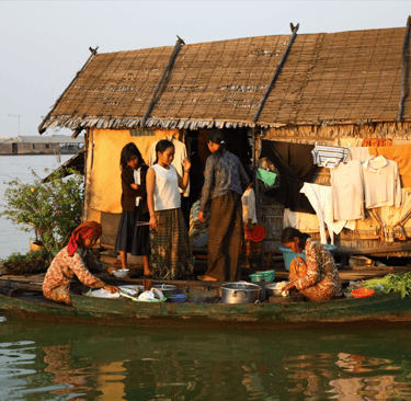 Passeio em barco local pelo vilarejo flutuante de Kompong Kleang e visita a templos antes de regressar a Phnom Penh.