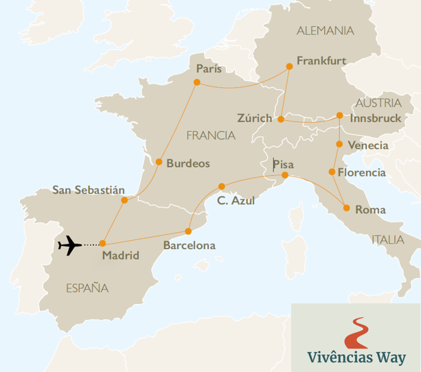 ✨Descobrindo... Madri (2) / San Sebastián / Bordeaux (1) / Região do Loire / Paris (3) / O Reno / Heidelberg / Lucerna / Zurique (1) / Innsbruck / Veneza (1) / Pádua / Florença (1) / Roma (3) / Pisa / Costa Azul (1) / Barcelona (1) / Zaragoza / Madri (1)
