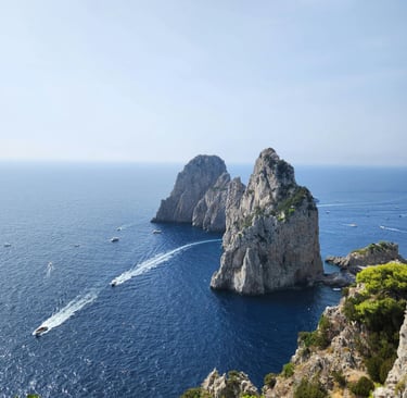 Embarque em um barco e navegue pelo cintilante Mar Tirreno rumo à lendária Ilha de Capri, uma joia de mitos, beleza natural e glamour que há séculos encanta imperadores, artistas e viajantes.